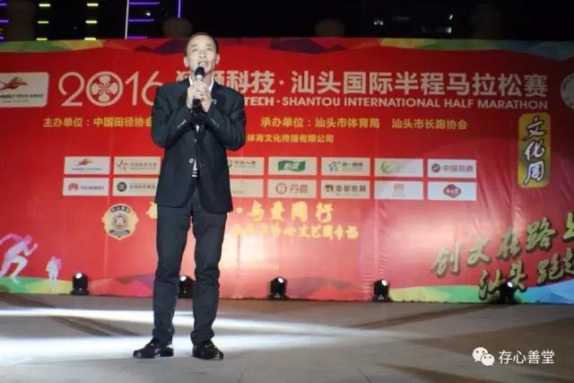 12月20日晚上,由中国田径协会、汕头市人民政府主办,由汕头市体育局 、汕头市长跑协会承办的汕头国际马拉松半程赛文化周之《存念真情.与爱同行》存心文艺团专场晚会在人民广场顺利举行。晚会以星光艺术团的舞蹈《兵》做为开场,存心武术学校《潮汕李家教雄风》武术表演紧随上演,刚柔并济;不仅有潮汕著名表演艺术家赵曙光、方莉莉的小品演出;更有存心特殊教育学校的学生们特别编排的潮汕歌谣《拍剪刀》等多彩节目。汕头市以“创文在路上、汕头跑起来!”为主题,以“侨乡文化”、“潮汕美食”为特色,将马拉松赛事融入汕头争创全国文明城市的主旋律,展现汕头城市文明新风尚,展示汕头人文新气象。