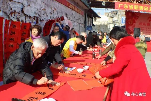 经过各部门近二十天的充分准备,由存心慈善会主办的2017年度“迎新春·倡文明”大型慈善活动于1月16日在存心小广场取得了圆满成功。活动现场人头攒动,热闹非凡,蔡木通会长、市老干部书画研究会谢书琪会长和市书协陈锡镇主席带领书画家现场为大家挥毫赠春联。当日早上共为1000户贫困家庭送去爱心物资,存心红亭办事处协助筹集爱心物资,在存心援助义工队的协助下于活动现场有序发放。汕头市太安医院也在现场义医义诊,为市民们免费检查身体、根据病情开处方,方便问诊的群众;东川造型为市民免费理发;同时,东朋品阅公司还向广大市民免费发放“石头造”环保袋,宣传环保,美化汕头,活动结束后存心义工们帮忙在老市区范围内免费发放环保袋。存心祥爱义工队受热心人委托将1500元善款捐赠给一位单身母亲。市民们观看存心文艺团为大家带来的歌舞、乐器演奏、小品等精彩节目,踊跃参加“谜语擂台”,猜谜语,歌盛世,在各种精彩纷呈的节目中感受到春的温暖,在欢声笑语之中迎春接福,喜气盈盈;存心义工在活动现场维护秩序,搬运布置桌椅,在辛勤的劳动中,共同营造了良好的慈善气氛,传递了满满的正能量,一起感受着春节即将来临的喜庆。活动结束后,省慈善总会蒋南常务副会长兼秘书长参观存心儿童教养院、庇护安养院和养老院等存心内设机构。本次活动得到了广东省慈善总会、汕头市老干部书画协会、汕头市书协、汕头存心艺术团、汕头存心书画义工队、汕头存心红亭办事处、存心濠江办事处、存心诊所、汕头市太安医院、东川造型、汕头东朋品阅公司等单位鼎力相助,在此,蔡木通会长代表存心善堂和本次受惠的群众表示衷心的感谢,并祈祝大家在新的一年里,善业进步,吉祥永驻,福运昌隆,万事如意!