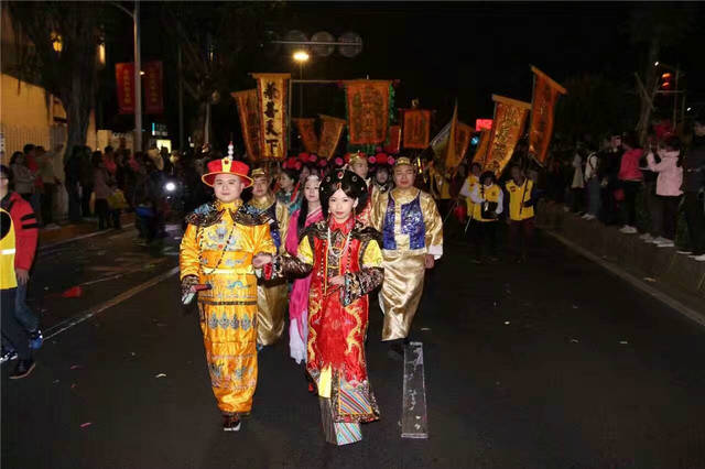 游行队伍壮观,仪仗庄严、礼炮齐鸣、创文大匾、高灯彩旗等,浩浩荡荡;西游闹春、八仙游行、金鸡报春、三星报喜等,热闹非凡,喜庆欢腾;舞龙舞狮、英歌舞、双咬鹅、潮汕武术等节目,锣鼓喧天,精彩纷呈。颇具潮汕民俗文化特色的“七十二行、三姑六婆、九流三教”等节目表演,喜气洋洋,重现“补鼎打铁”、“箍桶修桶”、“犁耙水车”、“山货竹器”等等传统行当,惟妙惟肖,让市民群众回味旧时光,让年青一代了解到更多的传统潮汕民俗文化。