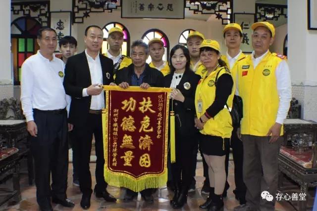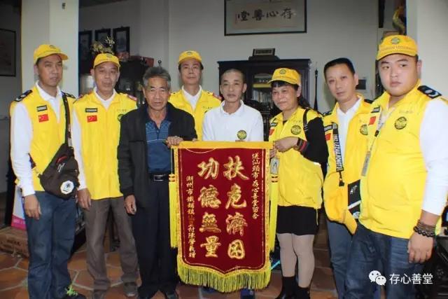 3月30日下午,陈学义的父亲在存心同心联盟义工中队的陪伴下,给存心善堂送来一面锦旗,感谢存心善堂及社会热心人的帮助,让自己的孩子能有医病的机会。家住潮州市湘桥区铁铺镇仙岩村的陈学义2015年3月15日晚突发脑干出血导致瘫痪在床送医院治疗,已花费四十多万元,债台高筑,杜借无门一家人生活陷入困境,只好向存心善堂求救,存心善堂马上展开救助措施,通过“我筹吧”存心筹网络救助平台,在各界热心人士的大力支持下,短短四周时间共筹集爱心款56077.99元。2017年2月22日下午“存心筹”爱心使者徐英豪组长带领徐庆瑞副组长、陈国平、石逸爱心使者亲赴潮州市陈学义家中上门慰问,送上社会各界的爱心款。陈学义一家表示万分感谢并让存心善堂转达对社会各界各位仁翁善长表示谢意,祝愿所有参与者好人一生平安。