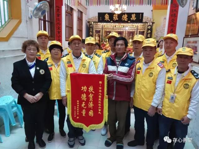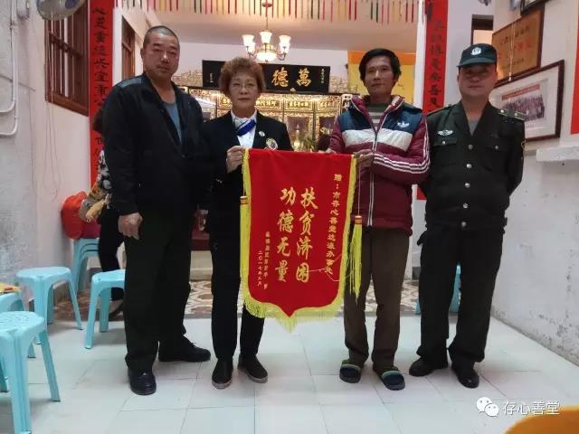 “扶贫济困,功德无量。感谢存心善堂对我的照顾,谢谢你们!”3月27日早上,刚被存心濠江办事处列为每月帮扶对象的陈新华送来了一面锦旗,回馈自己的心意,以表心中的感激之情。今年61岁的陈新华,情况较为特殊,因患有间歇性精神病,至今尚未成家,其母上个月刚过世,目前孤身一人,家里无经济来源,生活困难。经过存心濠江办事处前段时间的摸查和现场走访,于 3月23日上午,存心义工濠江丽濠服务队代表办事处到濠滨上门慰问了陈新华,送去了大米、食用油以及面食等物资,并为他们送上600元慰问金。办事处叶丽芳主任发乎于心,践之于行,将该户列为办事处的重点帮扶对像,为他发放爱心卡,每月到办事处领取生活物资,从而解决了陈新华的后顾之忧。