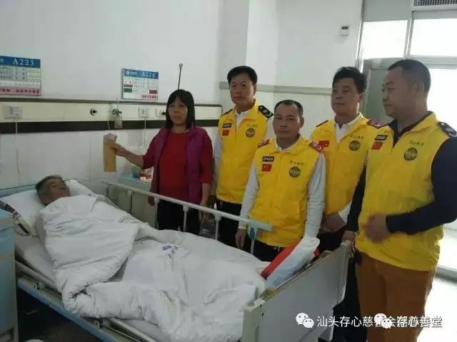 3月21日,存心潮普现德义工队马俊华队长与林楚湖副队长、陈汉德副队长带领马振光、马余胜、马镇松、陈清松、陈少冬等队员,到潮阳区大峰医院亲切看望身患冠心病的孤寡老人马元金,并送上现德义工队自筹的医助金2000元。今年84岁的马元金老人,是潮阳区和平镇下寨居民, 3月13日,马元金老人因身体不适而到潮阳区大峰医院就诊,14日被确诊为患冠心病。是存心潮普分会的长期扶助对象,膝下无子女,孤身一人,根本无能力支付高额的医疗费用,分会驻和平镇的存心现德义工队前往大峰医院进行核实后,马俊华队长即刻启动队内自筹资金,队员们纷纷伸出援手,以解燃眉之急。同时,存心潮普分会呼吁社会热心人士,一起来救助马元金老人,让他早日恢复健康,安度晚年。